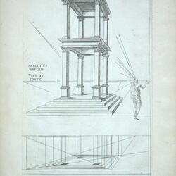 In this section we see how Soane’s pupils and assistants learnt from drawing. We see a young architect measuring one of the great Roman temples and we see how, in England, the art of perspective developed in the sixteenth century and the kind of books from which one could learn about architectural design and perspective. Lastly, we see one of Soane’s pupils drawing on site to record and learn about the process of construction.