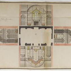 This section discusses what the drawings were for. We show a survey drawing of an existing building, one of Soane’s own sketch designs and the working drawing sent to the builder in the form of a ‘letter’ for the same building – the Tyringham Gateway. There is also a full-sized drawing of a detail in Soane’s greatest building – the Bank of England.