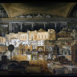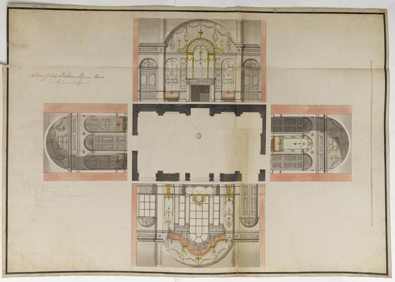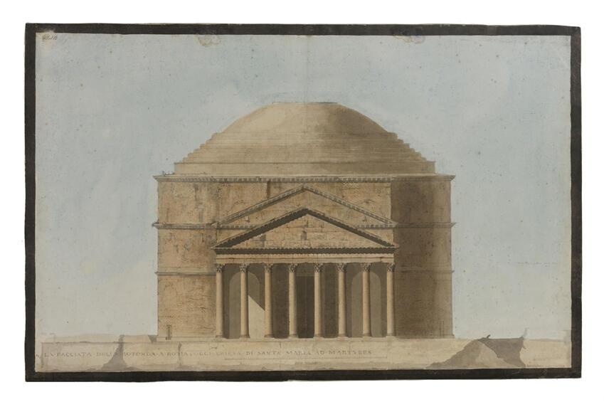 Some important buildings are shown: the Pantheon in Rome, one of the greatest Roman buildings to survive; Soane’s own country house, Pitzhanger Manor in Ealing and Lady Williams Wynne’s room, St James’s Square, designed by Robert Adam, whose drawings Soane bought for his collection.