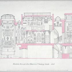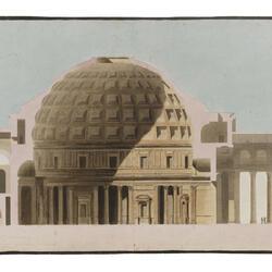 Here we see the sort of highly-finished drawings Soane would had had made to show a client how the building he designed for them would look. We also see the drawings which were made for exhibitions which were an essential way to show his skills as an architect, and we see the sort of drawings he had made to illustrate the lectures he gave at the Royal Academy as Professor of Architecture. This section contains an extract from one of his lectures which is illustrated by the drawing of domes.