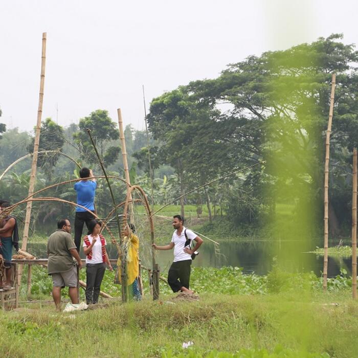 The Panigram project offered an opportunity to bring back the lost pride and belief in the wisdom of the land crafted over hundreds of years of dwelling in the delta. We believe that contemporary creative theory and practice must actively engage in reconnecting with the values of living meaningfully and symbiotically as a natural being. We opted for a minimally intrusive approach by including the villagers in the construction process and incorporating local knowledge of vernacular tradition. Through our engagement, we realised that keeping the Panigram villagers in their original locations would require provision of empowering opportunities, to revive the pride of craft, place and belonging. A cooperative named Panigram Community Initiatives was established to generate various activities and workshops to empower villagers to develop skills that would eventually lead to economic prosperity.