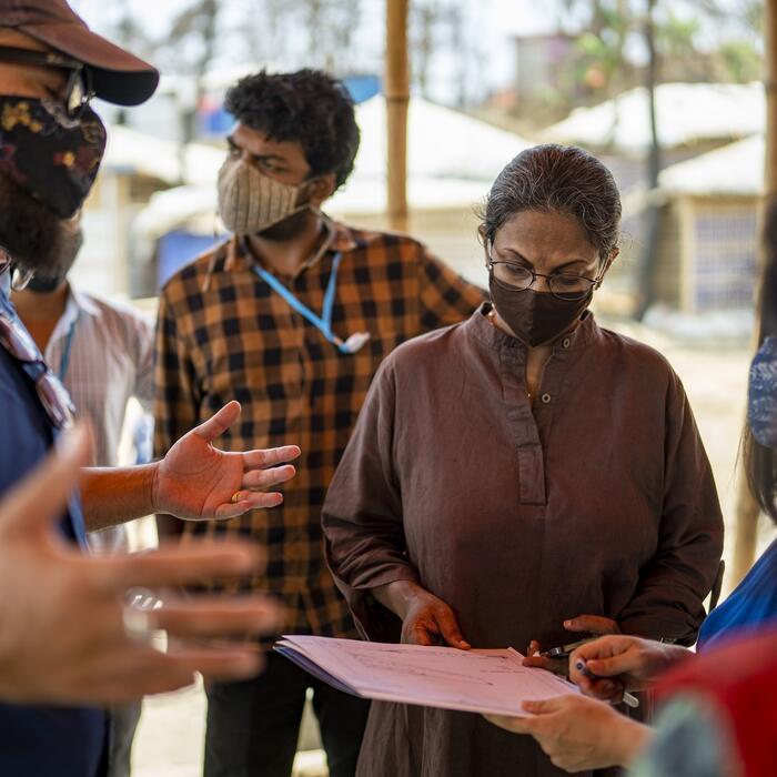 Our projects in the Rohingya Refugee Camps in Ukhiya focus on building resilience of people and nature through co-creation. The natural forest in Teknaf was ruptured by the influx of one million refugees from Myanmar in 2017; this high density population and lack of vegetation subsequently resulted in rising temperatures in summer and landslides during the monsoon season. Our project includes participatory workshops and engagement within these refugee communities to facilitate regeneration of the forest through various methods of planting, including seed bomb and bamboo nailing techniques. The activities are not only therapeutic but also enable participants with the knowledge of and motivation to care for the environment.