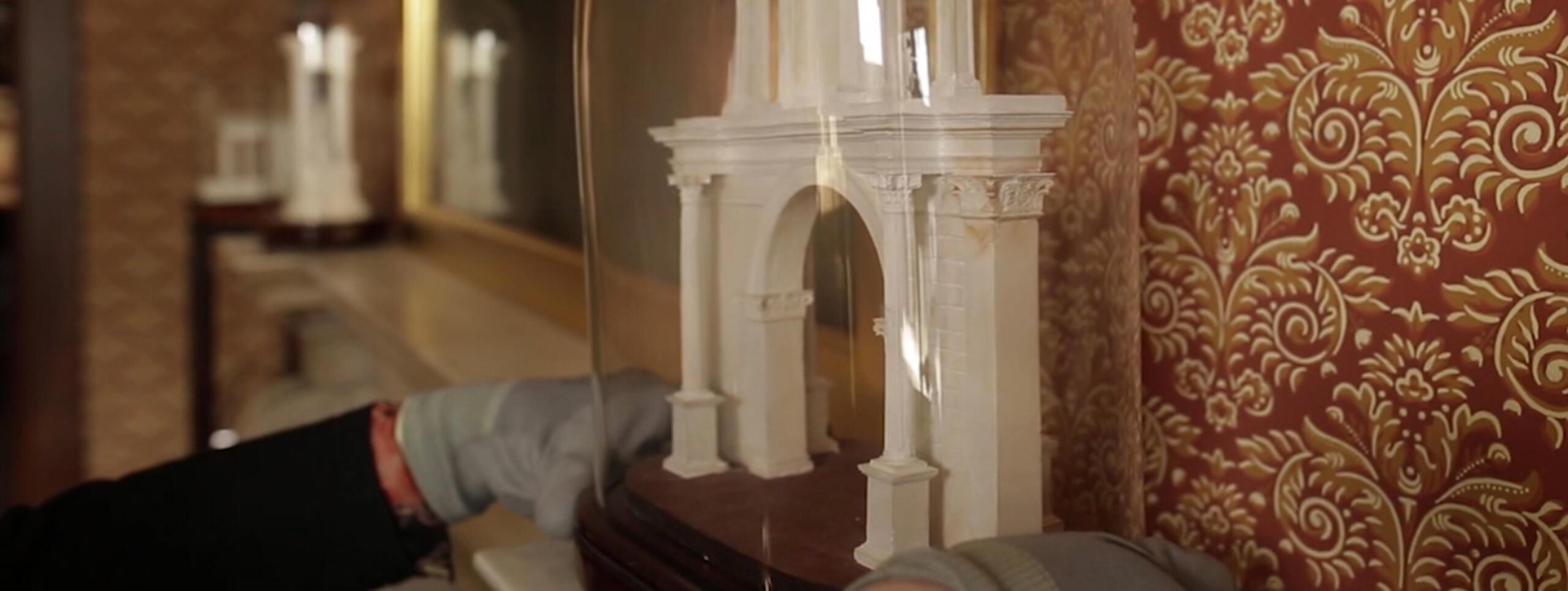 This clip follows the restoration of the final model, of the Choragic Monument of Lysicrates especially interesting because Fouquet based it not on the ancient Greek original in Athens but on the so-called 'Lantern of Demosthenes', a tall, tower-like folly, built in 1801 by Napoleon I in the park of the Château of St Cloud, Paris. The top two sections were loosely based upon the classical monument. The open circular structure contained a bust of the Emperor (replicated in miniature in Fouquet’s model) and the Lantern was intended to be illuminated to indicate that Napoleon was in residence at the Château!