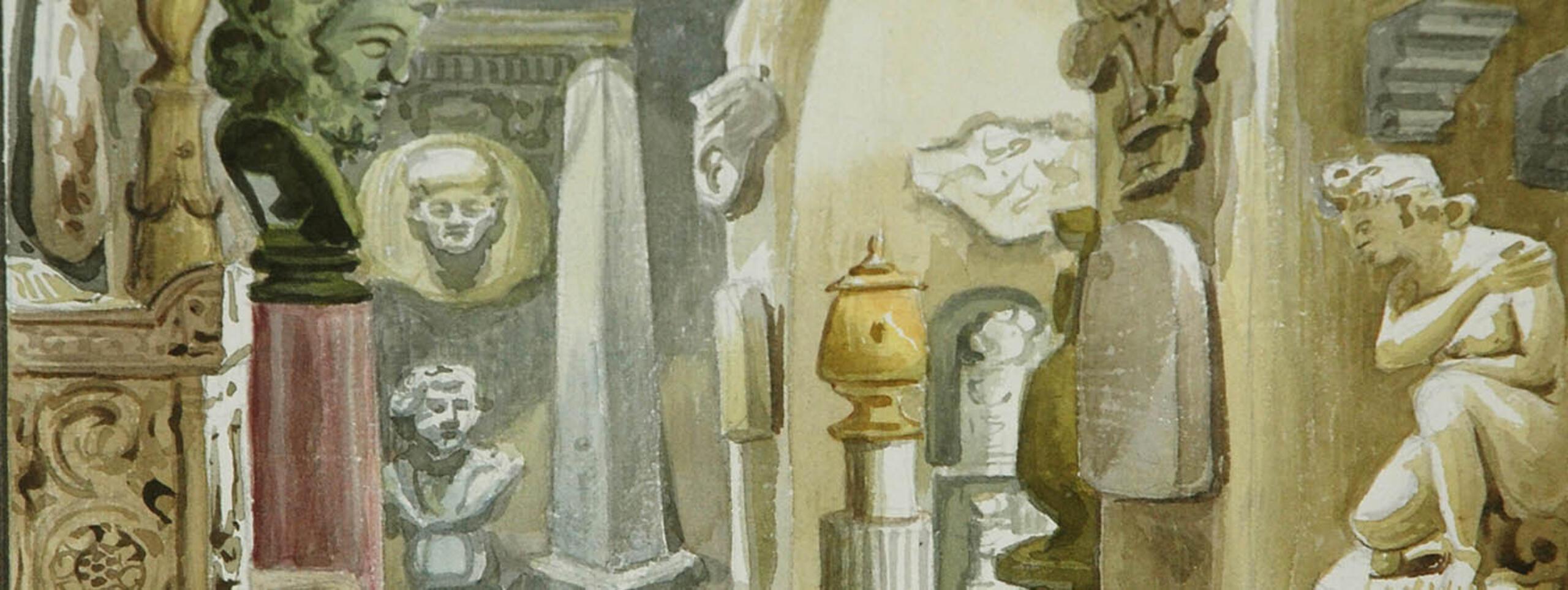 The Building Archive also fills gaps in documentary evidence by providing examples of fittings and fixtures, some with rare original painted surfaces. This collection complements the main Soane Archives, which contain Soane’s personal papers, post-Soane Curators’ records, and the many watercolour views and photographs which together provide an almost complete picture of the building and collections through time. A cast of a long-lost Egyptian head testifies to the evidence that we can draw upon to reconstruct lost elements of Soane’s arrangements.