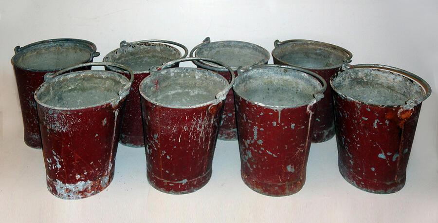 Eight metal fire buckets, in use in Sir John Soane’s Museum until c.2003, SM X1526