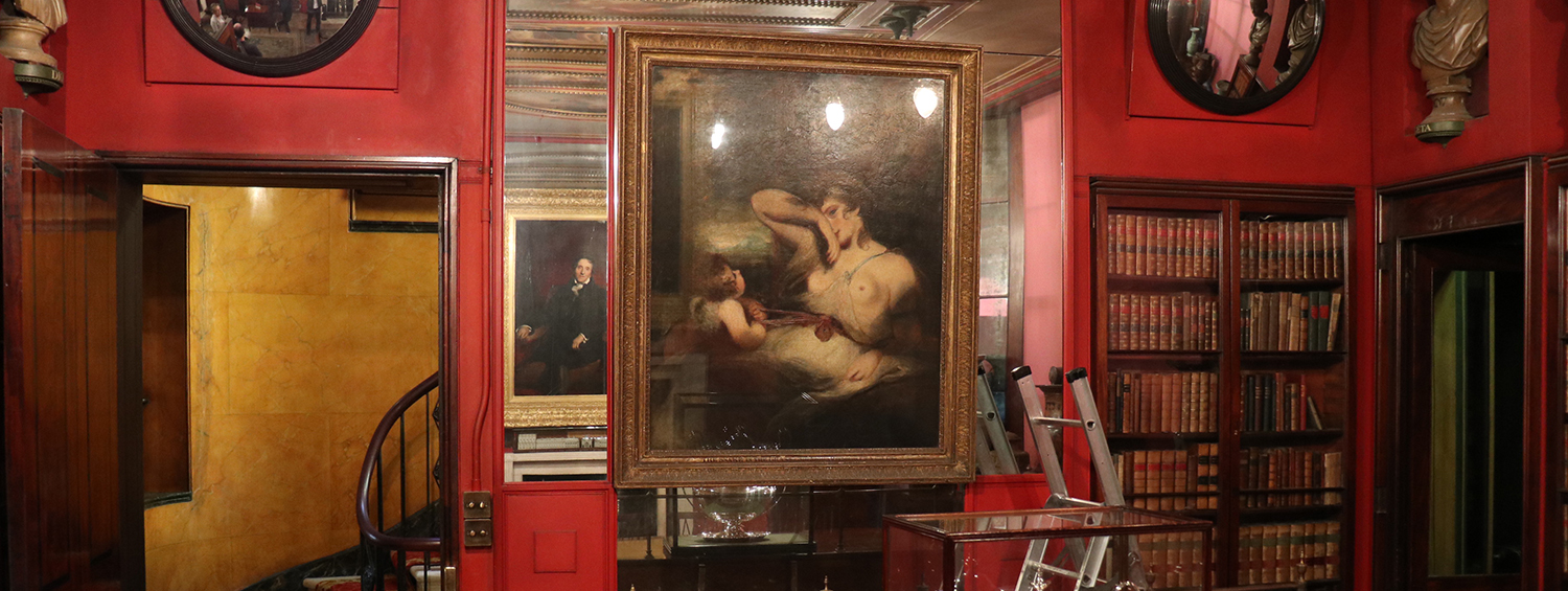 This week, art handlers arrived to deinstall The Snake in the Grass from the walls of the Library Dining Room. The painting was carried through the Museum up to the conservation studio, ready for work on the frame to begin.