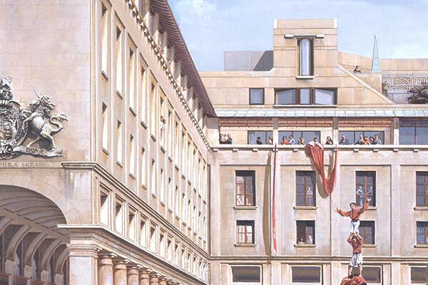 Carl Laubin, Painting of the Royal Opera House project in Covent Garden by Jeremy Dixon and BDP, 1986 (detail). Credit: Dixon Jones Architects