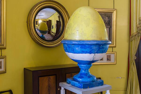 An egg from Terry Farrell's TV-AM building, in situ in the Museum. Photograph by Gareth Gardner