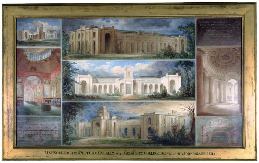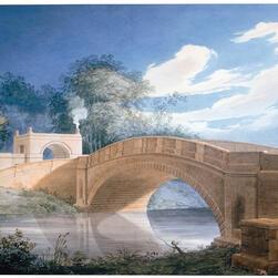 Following a Grand Tour of 1794-97, the extraordinarily skilled artist, architect and draughtsman Joseph Michael Gandy (1771-1843) returned to London at a time of economic instability. With the French Revolutionary Wars ongoing, the economic climate in Britain was one of hesitancy. It would have been near impossible for Gandy to establish himself in private practice either as an artist or an architect, particularly as he was from a humble background – one of twelve children of a waiter – and required an income. It was necessary for Gandy to take employment as a draughtsman within the architectural office of Sir John Soane. Although this position was short-lived, and Gandy established his independent practice in 1801, he remained impecunious throughout his life, and was dependent on freelance employment from Soane until the latter’s death in 1837. Between 1800 and 1838, Gandy’s private practice produced few architectural works, and he focused principally on painted architectural fantasies, reminiscent of the work of Giovanni Batista Piranesi, and these were exhibited almost annually at the Royal Academy.