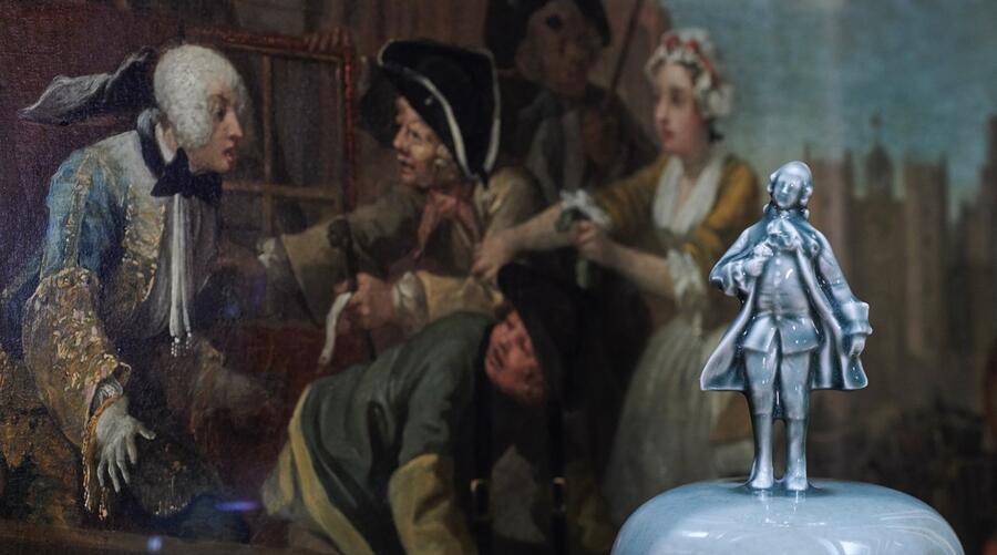 An acclaimed artist working with ceramics, Bouke de Vries’ latest work will respond to William Hogarth’s A Rake’s Progress, and displayed in the Museum’s Foyle Space. Inspired by Hogarth’s series of original paintings at the Soane Museum, de Vries will draw on his love of storytelling, and talent for symbolism through ceramics, with eight newly created porcelain vases presented in various states of (dis)repair. Starting with an immaculate celadon vase, de Vries treats the following seven increasingly deteriorating vases with a variety of restoration processes and glazes, which parallel the moral and physical degeneration of Hogarth’s anti-hero Tom Rakewell. Cracks appear in the surface, the vessels slump and implode – with obvious and drastic methods of repair failing to save the vase or Rake from their ultimate demise.