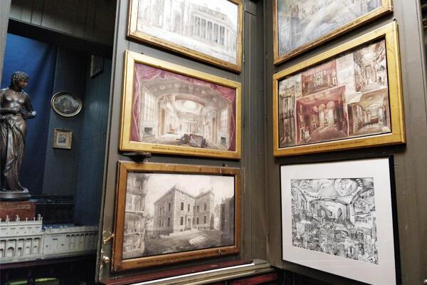 One of the highlights of the Picture Room's 118 paintings is Joseph Michael Gandy's (1771-1843) Public and Private Buildings Executed by Sir John Soane between 1780 and 1815, a vast watercolour depicting every building designed through Soane's career (and a portrait of Soane himself) in an imaginary, rather surreal stage-like space.