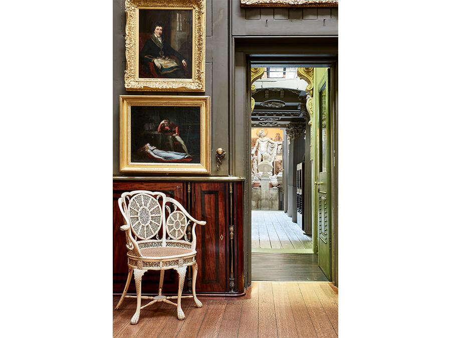 Notes in the early Soane inventories record that the table and chairs were ‘purchased at the sale of General Crewe’s effects by Richard Westmacott RA’. In fact, they were bought at the sale by a Mr Matthews who probably sold them to Westmacott. Soane acquired the furniture from Westmacott, a leading neoclassical sculptor and a close friend, in the early 1820s. There is no record of a payment and it seems possible – perhaps even likely - that Westmacott gave them to Soane specially for his magnificent new interior. Westmacott was extremely proud of Soane’s placing of his ‘Nymph’ as the centrepiece when the south planes of the room are opened.