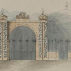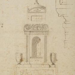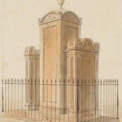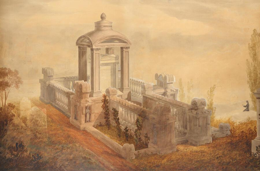 Joseph Michael Gandy (1771 - 1843), View of a monumental tomb erected in the burial ground of St Giles in the Fields at St Pancras (Mrs Soane’s tomb), Watercolour on paper
