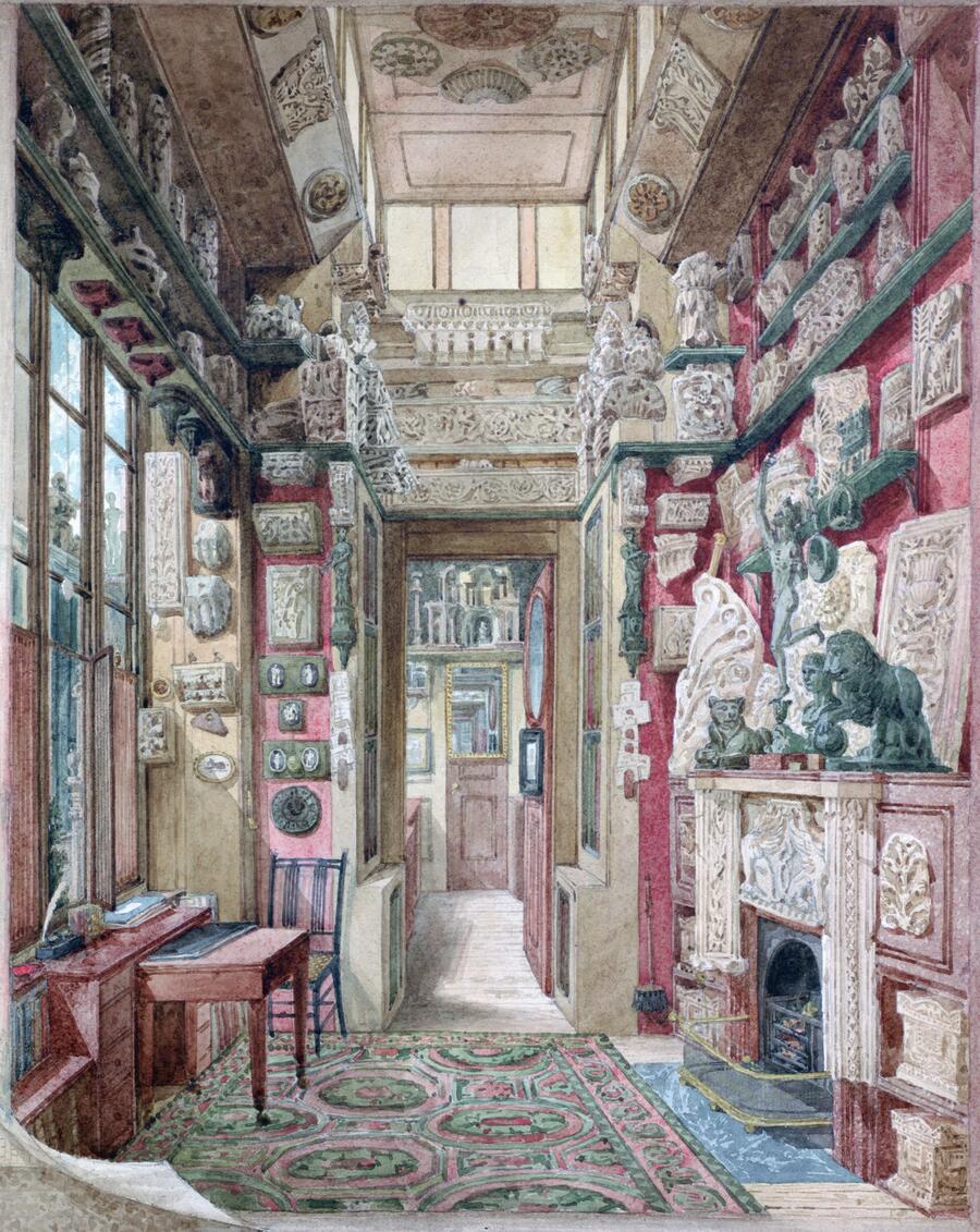 Just as we work at home today in surroundings that we have to a greater or lesser degree personally ‘curated’ to reflect the things that matter to us, so Soane’s ‘Little Study’ and Dressing Room provided him with an inspirational work-space where he could tackle his projects surrounded with reminders of past pleasures and the world beyond.