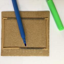Draw shapes on your cardboard - a frame, an arch and a sill with lines to divide a window into 3 sections of windowpanes.