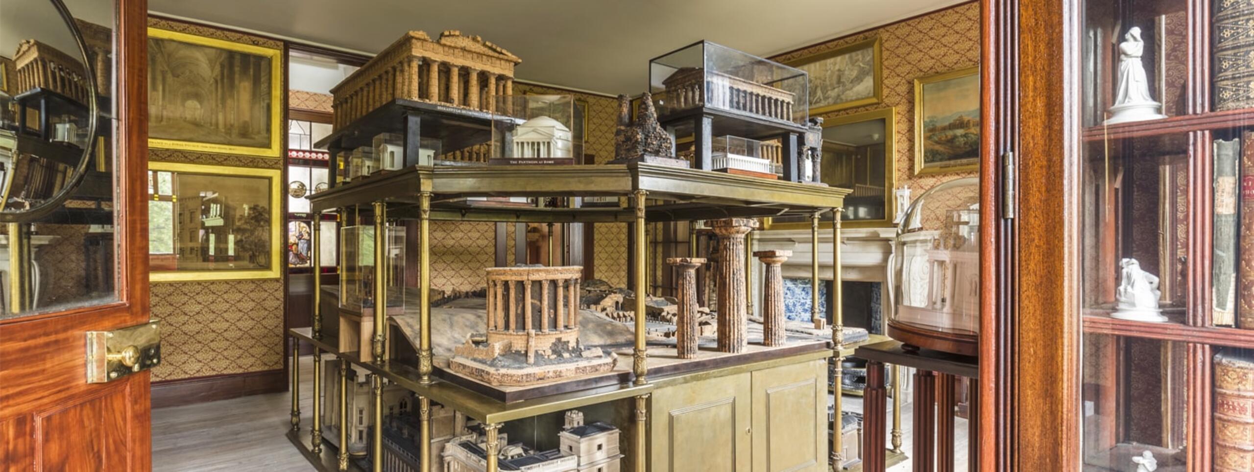One of Sir John Soane’s final additions to his Museum, the Model Room contains a display of cork and plaster architectural models depicting some of the most famous monuments of the ancient world, as well as Soane’s own building projects.