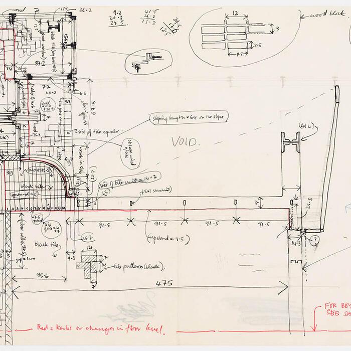 The drawings that Ken provided for the contractors were unusual. Instead of showing floor plans of each maisonette type independently, floor levels, sections and elevations of the building were drawn in their entirety, and in great detail, even down to floor tiling. In a sense they were a description of the completed building – an analogue of the building to be, rather than instructions to a contractor for its construction.