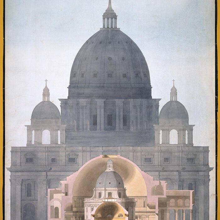 John Soane was certain that his work as an architect would be of interest to future historians. We see this in the care he took of his drawings, which has permitted critics and historians to carefully follow the path of his career. Proof of the esteem he held for his work is also apparent in his collaboration with the architect and renowned draughtsman Joseph Michael Gandy, whose remarkable renderings of Soane’s work are just as impressive today whether they depict perfectly realised designs or visions of them as ruins. Gandy’s illustrations of the Bank of England are a perfect example. Soane was aware of how the essence of architecture was manifest equally in its process of construction as it was in the vision of its ruin. The extraordinary panorama of all his work makes manifest how Soane foresaw his work becoming history.