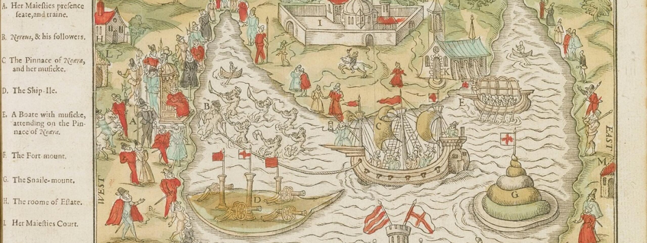 Image: ‘The Honorable Entertainement geven to the Queenes Majestie in Progresses, at Elvetham in Hampshire, by the right Honorable the Earle of Hertford’, London, 1591, Royal Collection Trust/©Her Majesty Queen Elizabeth II 2016, Creative Commons Attribution Non Commercial No Derivatives license.